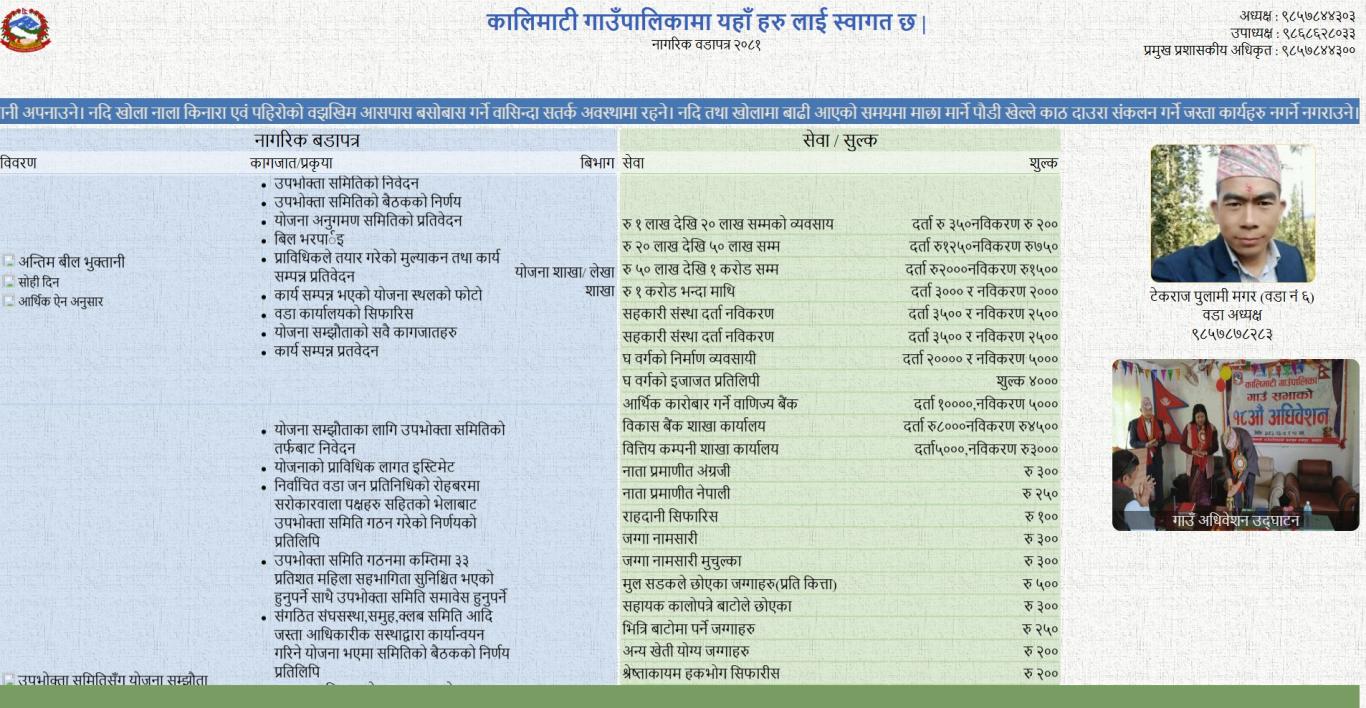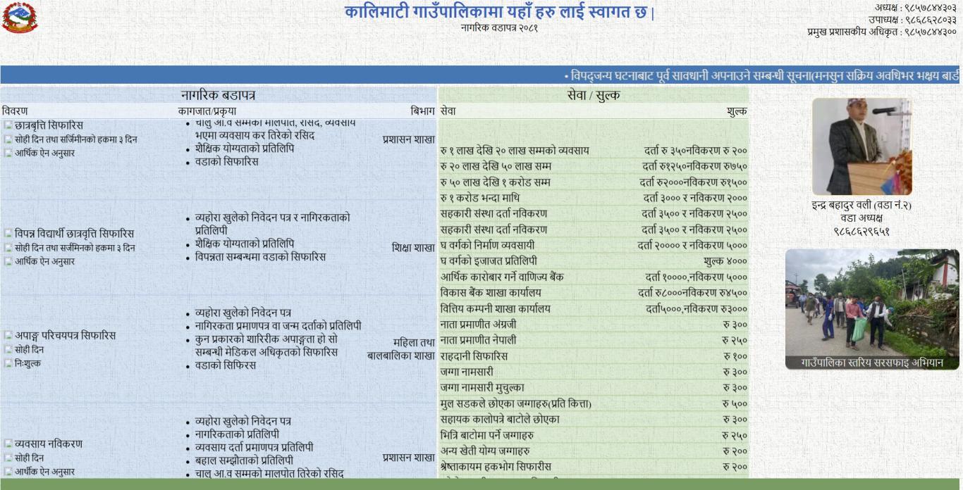 कालिमाटी गाउँपालिकाको वडापत्र